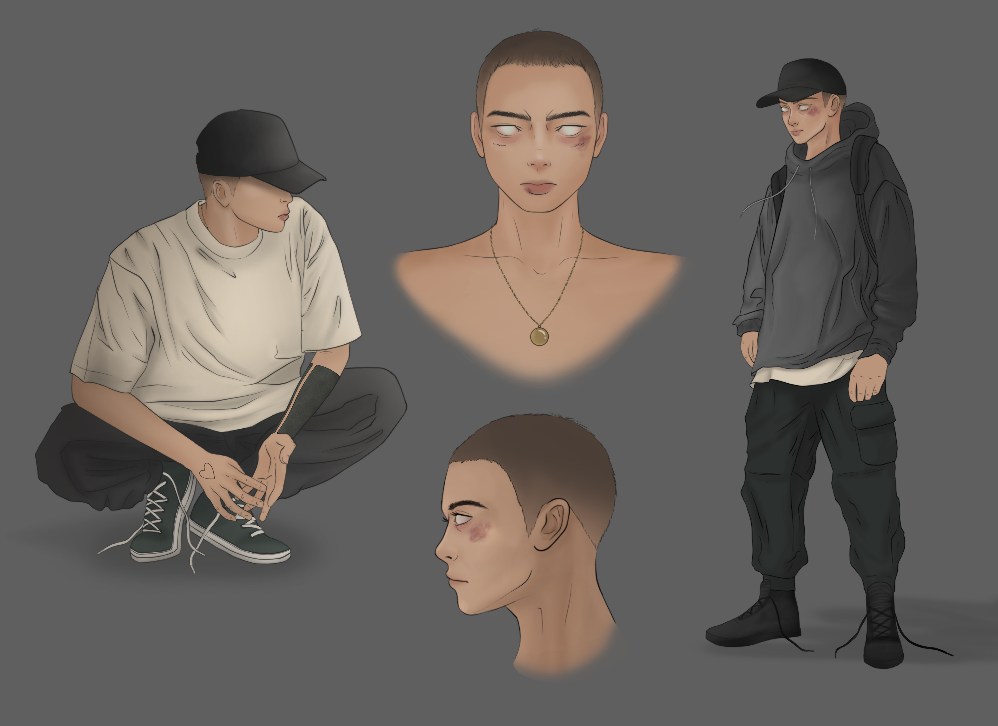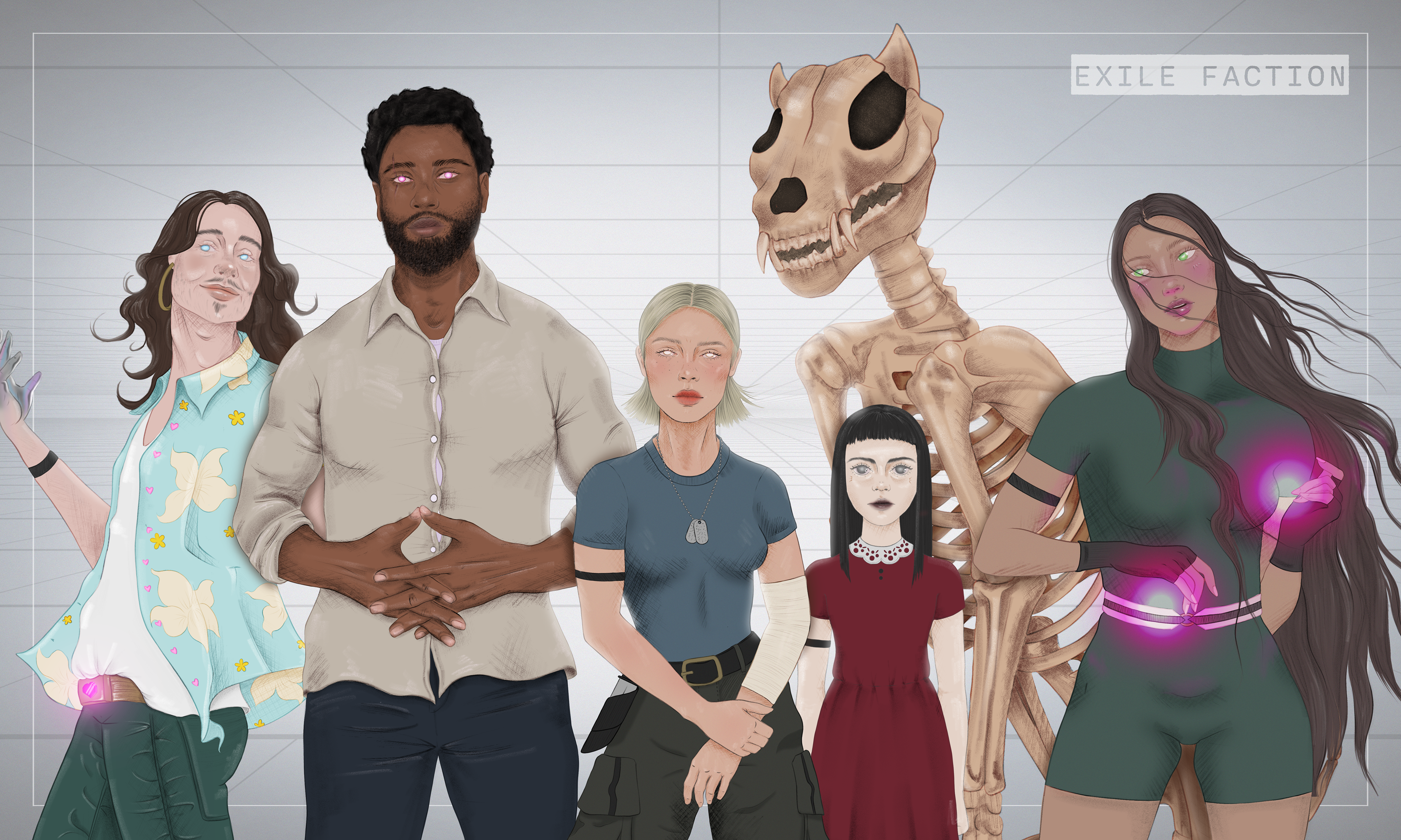 A personal concept art project about a group of engineered group of vigilante super heroes who clash with members of their group who form their own sub faction. This project involved sketches, character design, finished illustrations, and logo design.